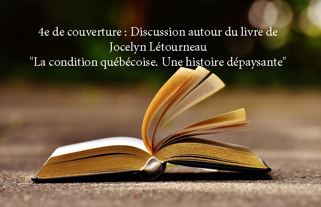 Dans le cadre de cette première séance, c’est l’ouvrage de Jocelyn Létourneau « La condition québécoise. Une histoire dépaysante », publié aux éditions Septentrion, qui sera discuté. En présence de l’auteur, Kesler Bien-Aimé (Ul, 3e cycle), Jonathan Riendeau (UL, 2e cycle), Eli Cortes Carreon (UQAM, 2e cycle) et Louise Ringelstein (UQAM, 2e cycle) formuleront leurs questions et commentaires qu’a suscité ce livre et Jocelyn Létourneau y répondra. Animée par Jean-François Gauvin, directeur du CELAT, cette activité a lieu par Zoom le 5 novembre 2020 à 11h30 au lien suivant : https://us02web.zoom.us/j/84070463670?pwd=ZVpEWEROZTB1dFB0a01DQjM1YnE3UT09 et par Facebook live : https://www.facebook.com/events/361101481866738.