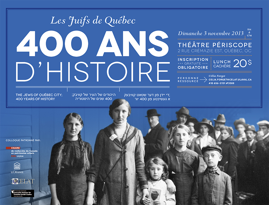 Organisé par Pierre Anctil, en partenariat avec la Chaire de recherche du Canada en patrimoine urbain dirigée par Luc Noppen, le CÉLAT, l’Université d’Ottawa et la Chaire de l’Université Concordia en études juives canadiennes,