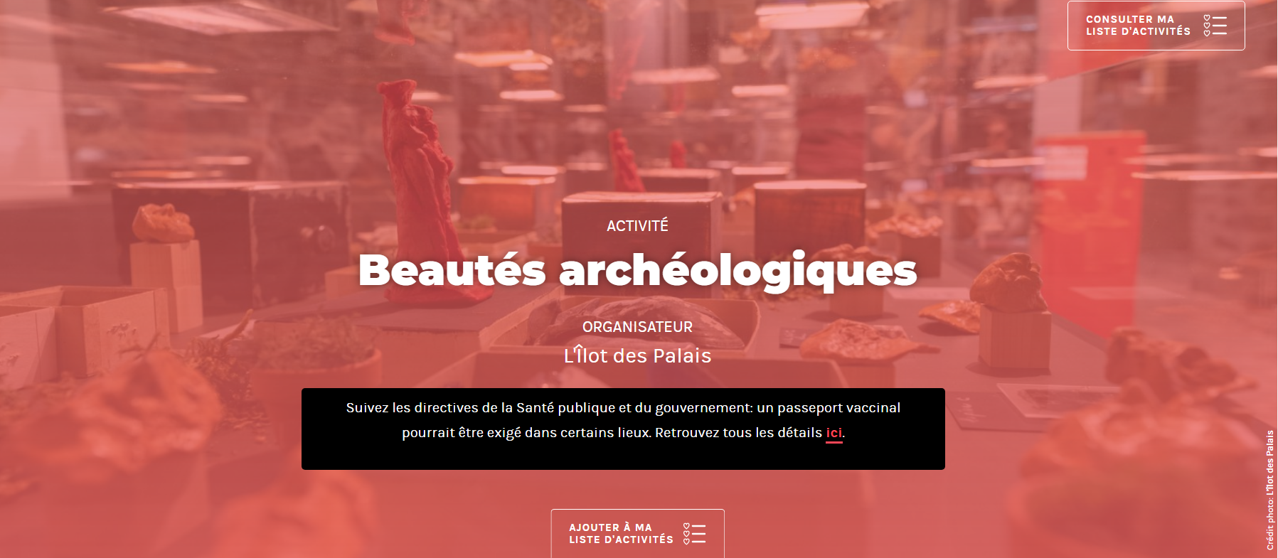 Dans le cadre de l’édition 2021 des Journées de la culture, nos membres Allison Bain et Francine Saillant prendront part, avec l’artiste visuelle Camille Courier, à l’activité « Beautés archéologiques », qui se tiendra le dimanche 26 septembre, de 13 h 30 à 16 h, à l’îlot des Palais.