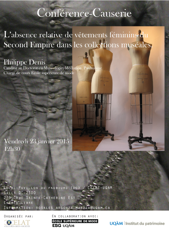 Exposé en 2008, dans le cadre de l’exposition Sous l’empire des crinolines, le constat quant à l’exiguïté des locaux qui empêche de disposer en grand nombre de robes du Second Empire, est l’instigateur de notre réflexion, à savoir s’il existe d’autres raisons sous-jacentes à cette réalité. Est-ce qu’une absence relative de vêtements féminins confectionnés à cette époque peut découler que de l’espace physique des réserves muséales?