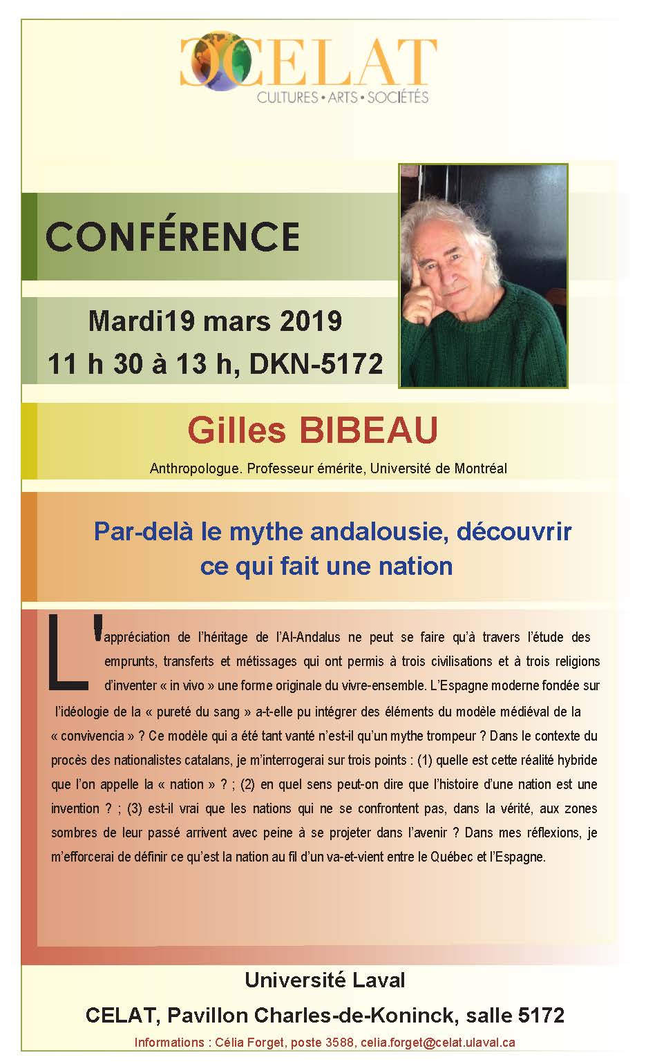 L’appréciation de l’héritage de l’Al-Andalus ne peut se faire qu’à travers l’étude des emprunts, transferts et métissages qui ont permis à trois civilisations et à trois religions d’inventer « in vivo » une forme originale du vivre-ensemble. L’Espagne moderne fondée sur l’idéologie de la « pureté du sang » a-t-elle pu intégrer des éléments du modèle médiéval de la « convivencia » ? Ce modèle qui a été tant vanté n’est-il qu’un mythe trompeur ? Dans le contexte du procès des nationalistes catalans, je m’interrogerai sur trois points : (1) quelle est cette réalité hybride que l’on appelle la « nation » ? ; (2) en quel sens peut-on dire que l’histoire d’une nation est une invention ? ; (3) est-il vrai que les nations qui ne se confrontent pas, dans la vérité, aux zones sombres de leur passé arrivent avec peine à se projeter dans l’avenir ? Dans mes réflexions, je m’efforcerai de définir ce qu’est la nation au fil d’un va-et-vient entre le Québec et l’Espagne.