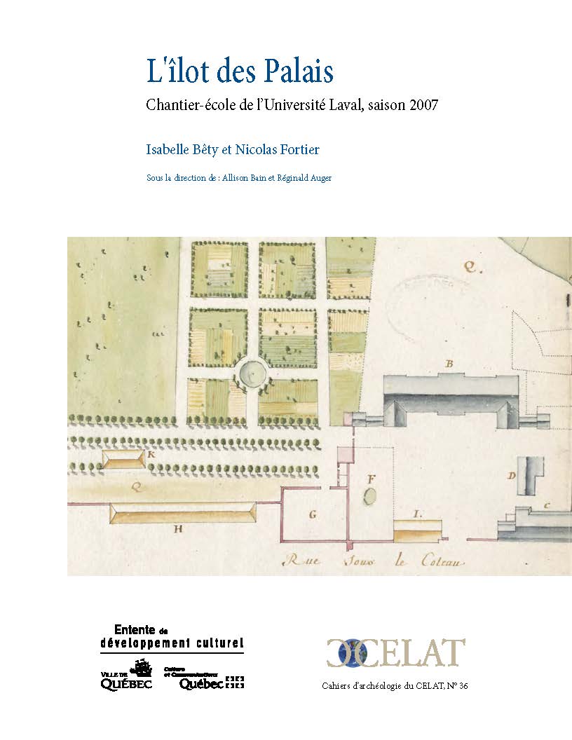 Isabelle Bêty et Nicolas Fortier, candidats à la maîtrise sous la supervision d’Allison Bain (CÉLAT) et de Réginald Auger (CÉLAT) viennent de publier le trente-sixième Cahiers d’archéologie du CÉLAT intitulé « L’îlot des Palais. Chantier-école de l’Université Laval, saison 2007 ».